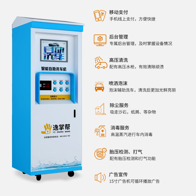逸掌幫除了具有強(qiáng)大的自主洗車盈利能力外,還具有戶外廣告機(jī)的功能,可承接廣告與商家合作、保險(xiǎn)、旅游賺廣告費(fèi),獲利方式多樣。